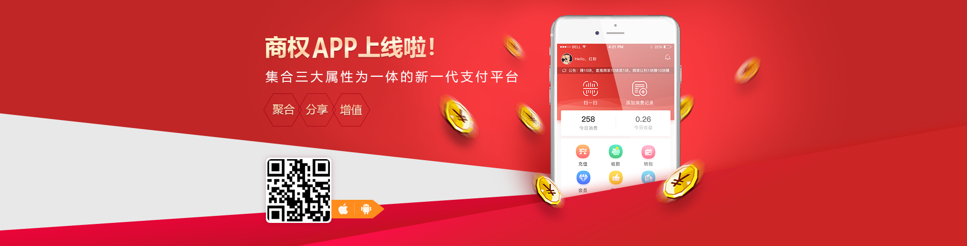 提供“三值一利”(消費(fèi)增值銷(xiāo)售增值、分享增值、支付便利),實(shí)現(xiàn)用戶(hù)及商家消費(fèi)增值、積分返利、跨界經(jīng)營(yíng)、收付款便利。