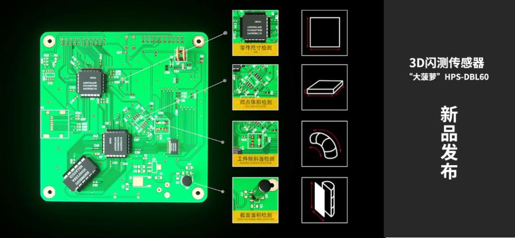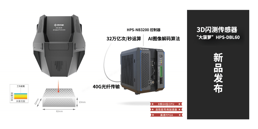 導讀:繼去年4月發(fā)布的中國首臺3D線光譜共焦傳感器引發(fā)行業(yè)廣泛關注后,2022年4月18日,海伯森在3D視覺檢測領域再次發(fā)力,正式發(fā)布中國首臺一體式3D閃測傳感器——“大菠蘿”HPS-DBL60 。