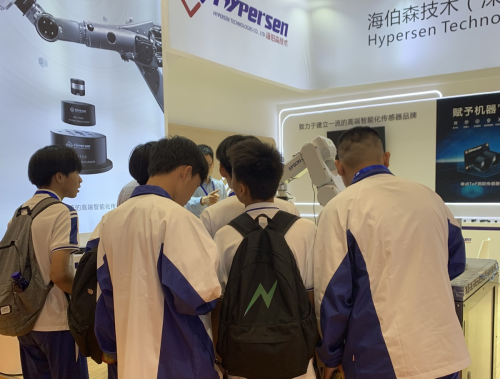 特別值得一提的是,現(xiàn)場(chǎng)機(jī)器人的演示過(guò)程,不僅讓專業(yè)觀眾領(lǐng)略到傳感器“出神入化”的神奇魔力,吸引眾多買家駐足、洽詢。展會(huì)期間,海伯森甚至迎來(lái)了一批特殊的學(xué)生觀眾,他們對(duì)于本屆智博會(huì)參展的自動(dòng)化設(shè)備、機(jī)器人等興趣十分濃厚,海伯森展館內(nèi)的機(jī)器人自動(dòng)化演示操作,對(duì)于他們來(lái)說(shuō)有著不小的科普啟發(fā)作用,或許,這會(huì)成為未來(lái)科學(xué)家誕生的契機(jī)。