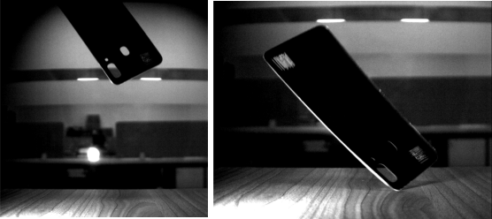 在機器視覺應(yīng)用中還有一項考驗手機質(zhì)量和抗沖擊性的重要內(nèi)容,那就是跌落實驗。跌落實驗是基于抽檢方式,利用高速工業(yè)相機系統(tǒng)快速捕捉手機跌落的碰撞瞬間,通過對形變圖像的分析,為產(chǎn)品結(jié)構(gòu)和材料的優(yōu)化提供數(shù)據(jù)指導(dǎo)。