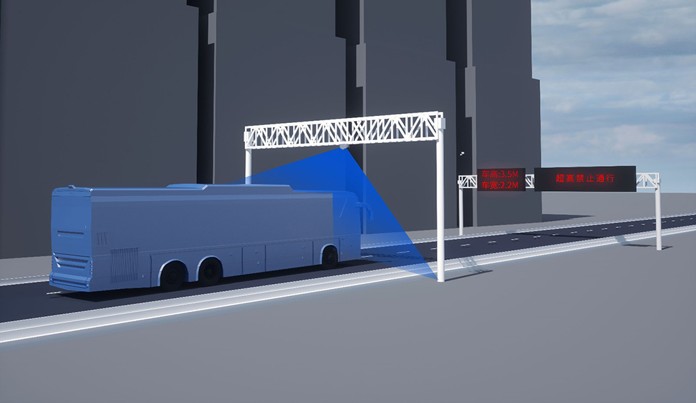 傳統(tǒng)的限高桿只考慮如何死死地卡住超高車輛,沒有考慮司乘的生命安全,一旦遇到雨霧天氣人眼無法判斷或者車速過快來不及判斷的情況,極易發(fā)生車輛撞到限高桿上的事故。針對高速公路入口、橋梁、隧道、涵洞與一些特殊路段的限高提出智能防撞解決方案,通過激光雷達的敏銳探測功能,對即將通過的超高車輛提前進行聲光警告,有效方便引導(dǎo)車輛。