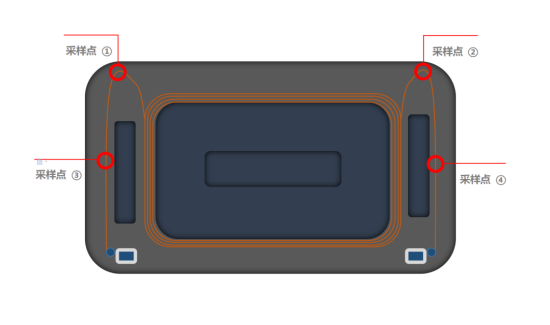 ● 在樣品表面選取邊緣4 個采樣點,以線掃描3D成像方式來檢測采樣點頂部到內(nèi)側(cè)底面的相對高度,并通過對橫向和豎直方向的多次數(shù)據(jù)采集驗證數(shù)據(jù)的重復(fù)性,示意圖如下:
